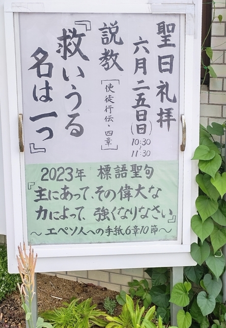 2023年6月25日(日)の聖日礼拝。礼拝説教は土井 浩 牧師による「救いうる名はひとつ」です。聖書は「使徒行伝」 4章5節から12節になります。