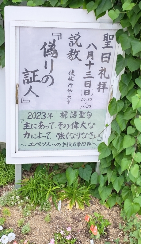2023年8月13日(日)の聖日礼拝。礼拝説教は土井浩 牧師による「偽りの証人」です。聖書は「使徒行伝」 6章7節から15節になります。