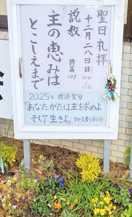 ○礼拝説教は土井浩 牧師による「主の恵みはとこしえまで」です。聖書は「詩編」 107篇 1節から16節になります。
