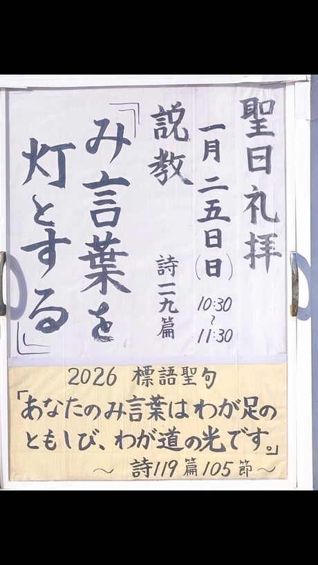 ○礼拝説教は土井浩 牧師による「みことばを灯とする」です。聖書は「詩編」 題119篇 105節から112節になります。