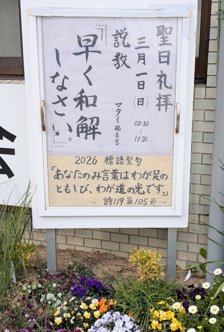 2026年3月1日(日)の聖日礼拝。